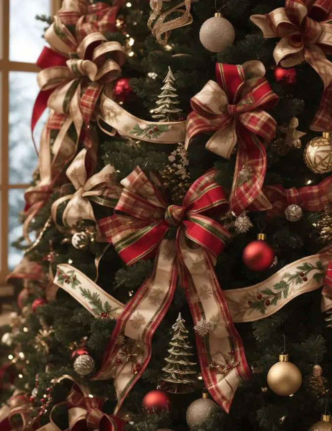 Plaid and checkered ribbons instantly add cozy, cabin-style charm to your Christmas tree. Their classic red, green, and neutral patterns bring warmth, texture, and a festive farmhouse vibe. Wrap them as garlands, tie them into layered bows, or weave them between branches for a fuller look. These ribbons complement natural elements beautifully and create a cheerful, traditional holiday aesthetic that feels both rustic and inviting.